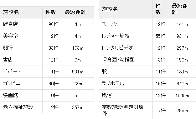 近隣の施設までの距離なども表示されるから